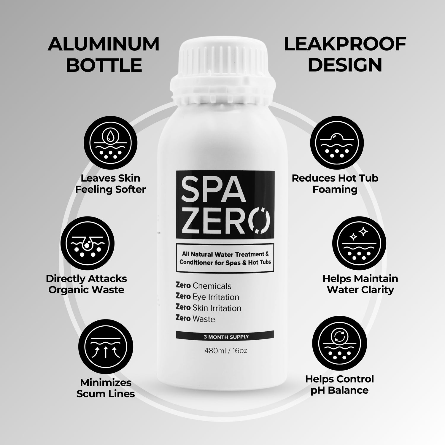 Spa Zero is designed to protect and enhance your hot tub experience with an eco-friendly, chemical-free alternative that provides a safer, cleaner, and more sustainable way to enjoy your relaxation time. Packed with natural enzymes and delivered in environmentally friendly aluminum packaging, Spa Zero offers a superior solution that protects both you and the planet.